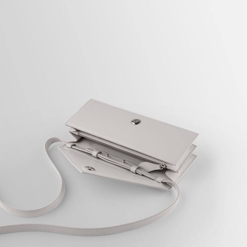 “Lettera”, inspired by the Bauhaus movement, is a bag made of rigorous and essential geometric lines that, through unusual volumes and proportions, expresses a strong and distinctive personality.